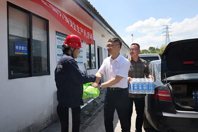 公司黨委書記、董事長鄭浩與工會主席、運行總監俞紅斌一行前往長材事業部駐外點和浙冶聯儲杭州庫,將防暑降溫慰問品送到堅守崗位的一線工作者手中,詢問、了解現場防暑降溫舉措、后勤保障落實情況,向奮戰在高溫一線的勞動者表示崇高的敬意,對他們不畏酷暑、盡職盡責辛勤工作表示感謝。