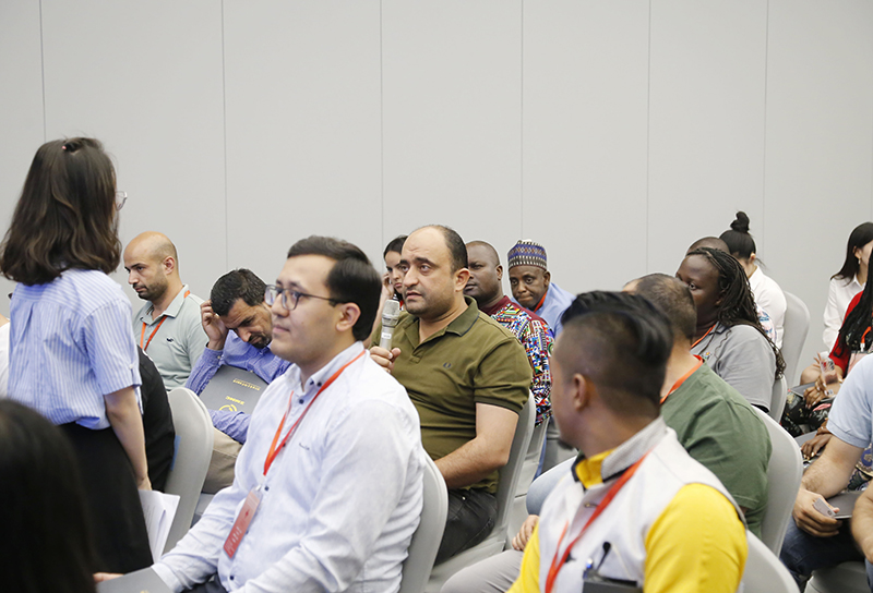 會(huì)上,鄭浩用英文介紹了杭鋼集團(tuán)的概況以及冶金物資的經(jīng)營發(fā)展情況,并與研修班學(xué)員互動(dòng),回答學(xué)員的現(xiàn)場提問。國際事業(yè)部相關(guān)業(yè)務(wù)負(fù)責(zé)人就具體業(yè)務(wù)內(nèi)容與研修班學(xué)員進(jìn)行交流。